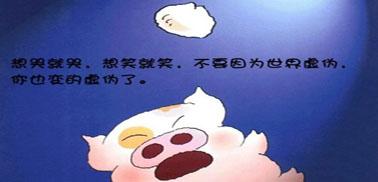 很久很久之前,有一只小猪迷路了,它坐在路边哭。 我想把它带回家,给它盖个大房子,为它遮风挡雨;我想每天都给它煮好吃的,把它养得白白胖胖的;我想保护它一辈子,让它永远开开心心的,没有忧愁,再不哭泣。 我发誓,永远陪着它,永远牵着它的小猪蹄,决不让它迷失在任何路口。 我想为它变成一只大猪,永远同它在一起。如果有屠夫对它举起刀子那么就让我挡在它面前,只要能保护它,我愿意交付我的生命。